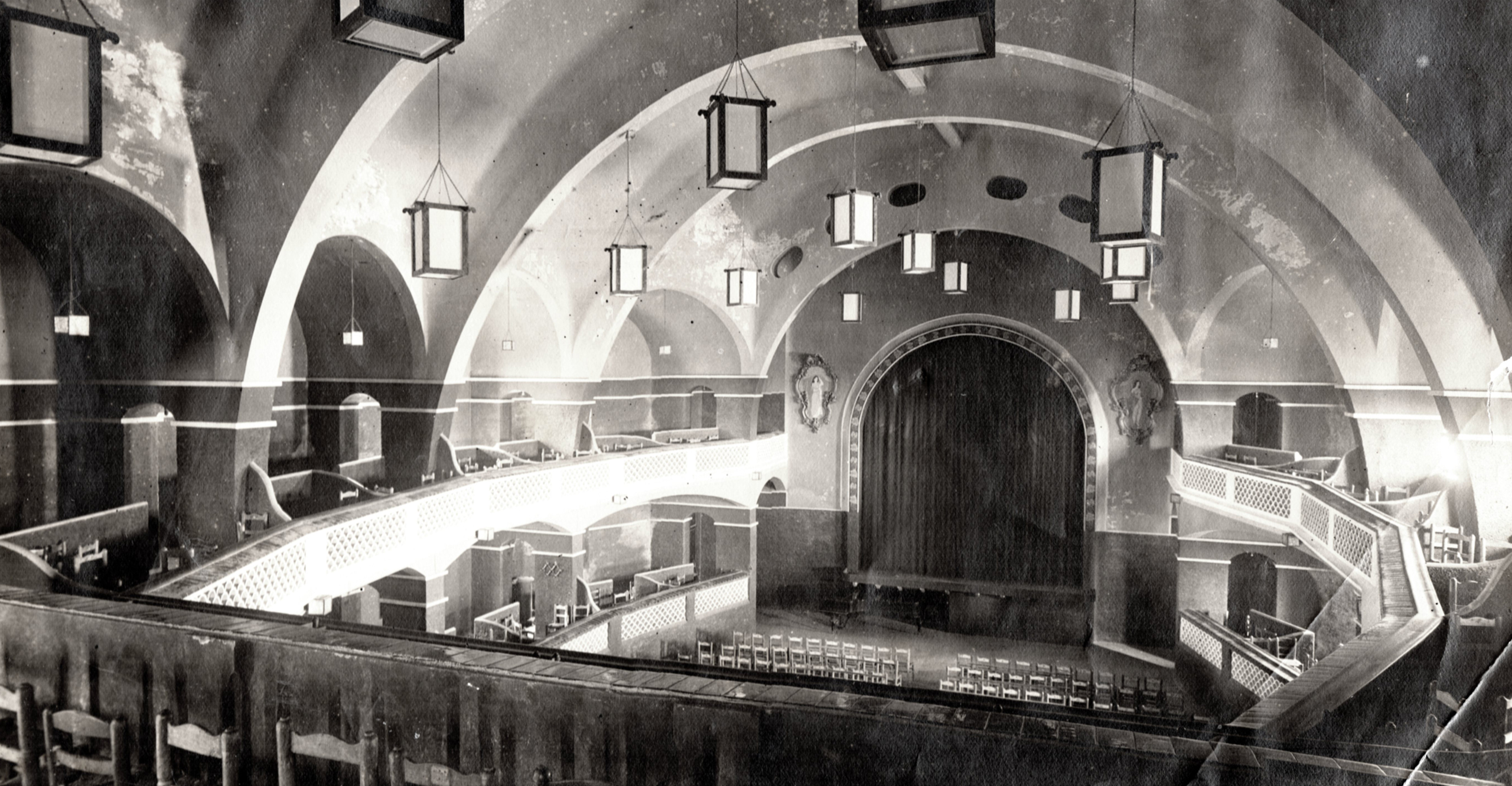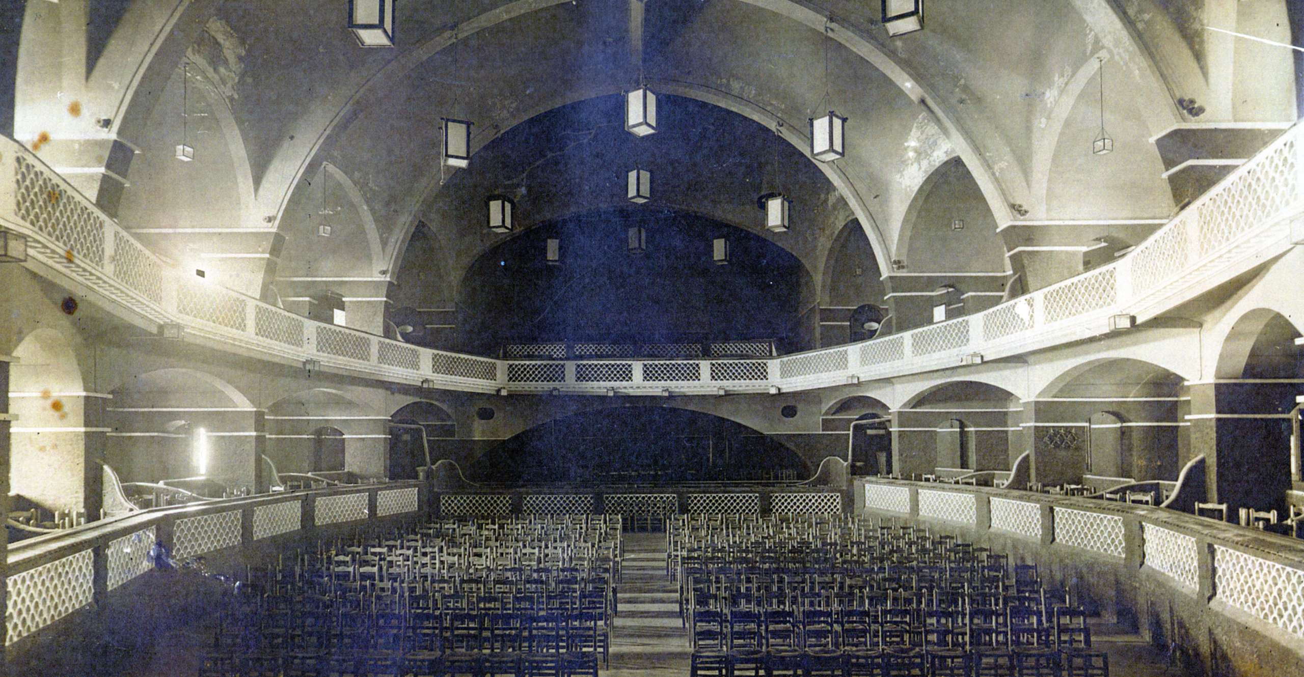 L’any 1916, el saló-teatre queda destruït per complet a causa d’un incendi en les instal·lacions. És per això que la junta directiva del moment encarrega a Miquel Utrillo la reconstrucció de la sala, que s’estrena el desembre d’aquell mateix any. Així doncs, Utrillo el reconstrueix en nou mesos amb unes grans voltes a la catalana que van de punta a punta del teatre.