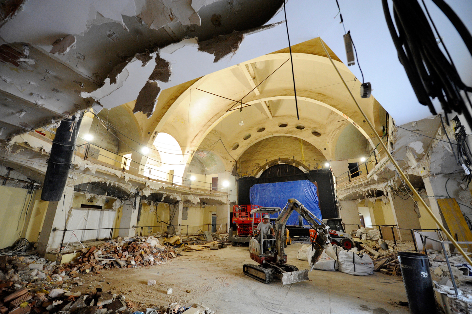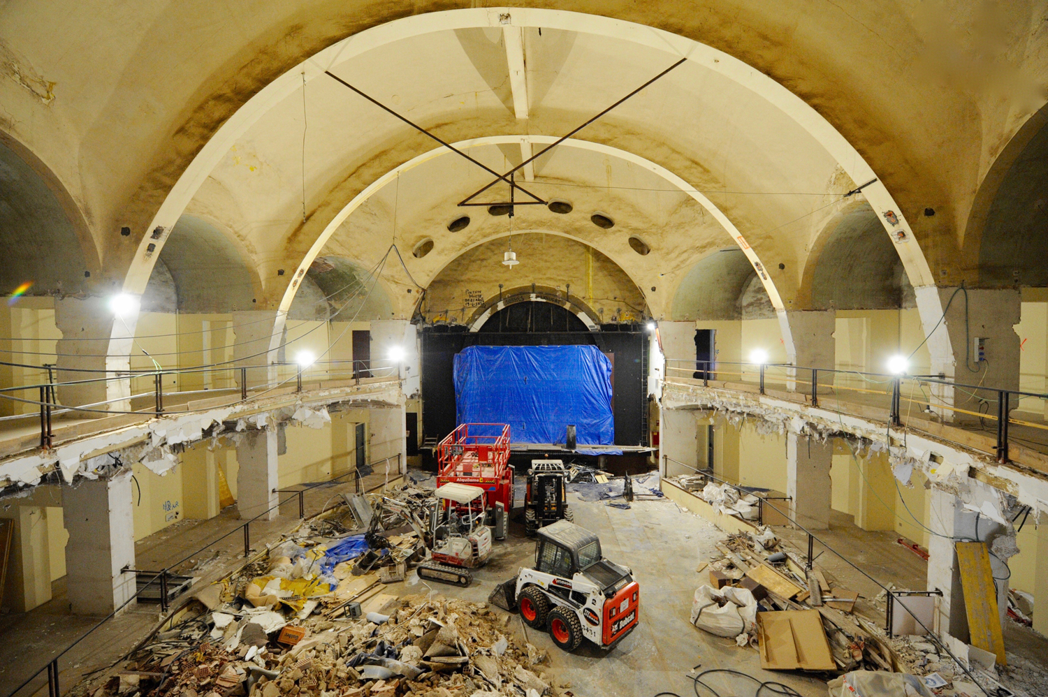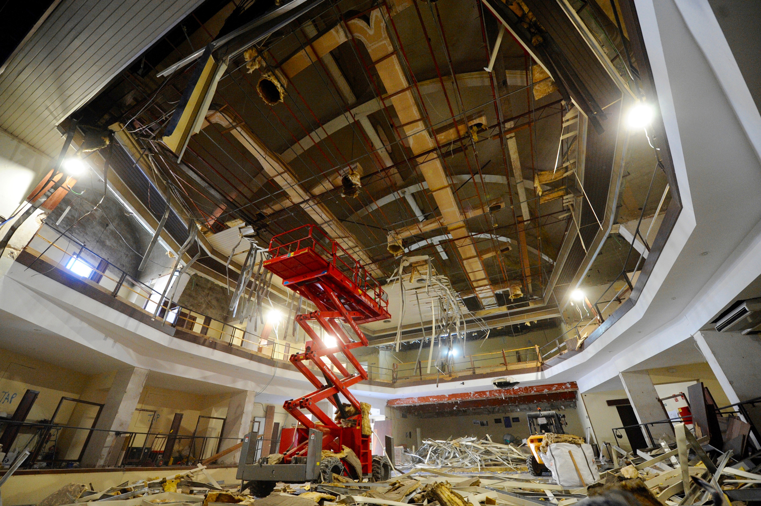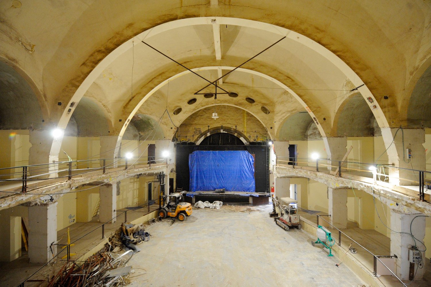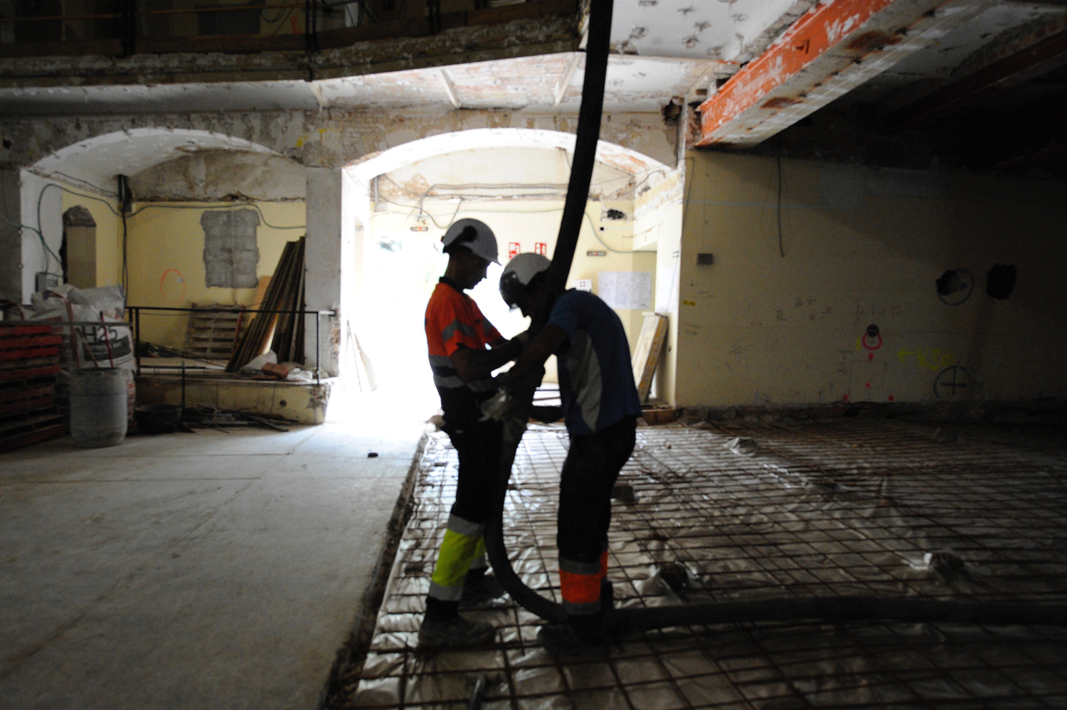 Les màquines van començat a operar a principis d’abril del 2024. Des d’aquell moment, s’ha retirat el fals-sostre que tapava les voltes, s’ha fet més gran la platea i s’ha completat el tancament de la nova sala de projecció, al primer pis. També s’han revestit les parets i s’ha pintat el saló.